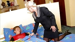 Stepson examines body of his very big-chested step-mother, she is pretending nothing is happening