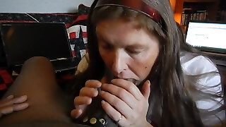 Mature MILF with Glasses Deep-throating Cock until Cum in Hatch - Amateur Hot MILF Wife Blowjob POV
