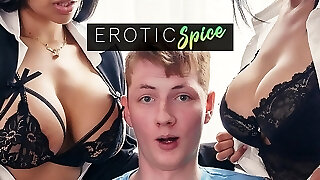 Ginger teen student ordered to headmistress office and fucked by his big bosoms Latina teachers in internal ejaculation threesome