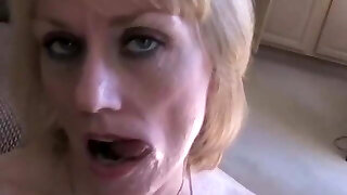白金金发成熟栏杆她的情人's好大小的乌木萨拉米香肠. 金发碧眼的成熟喜欢管道与她的情人's巨大的乌木dinky