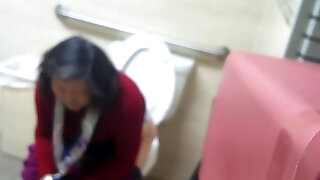 Plump mature woman makes a quick pee in public toilet