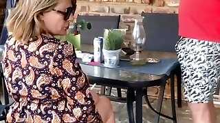 nippleringlover - horny milf without bra outdoors flashing pierced tits & pierced pussy, extremely stretched nipple piercing