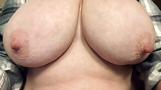 Step-mom came into my apartment, I'_m jerking off a dick, she looks and gets excited a hotty takes out her big natural tits and starts stroking her nips